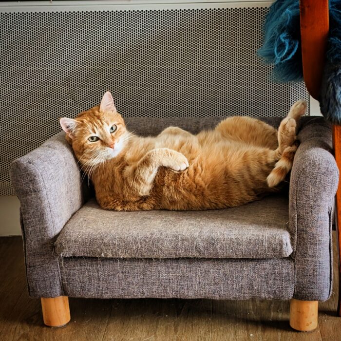 Arya adore son petit canapé, et elle s’y vautre exactement comme nous. Je la soupçonne vraiment de nous imiter !!! Je plussoie