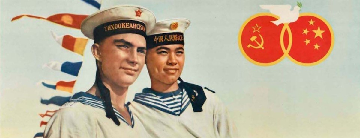 Alain nous sort une très belle série d’affiches qui célèbre l’amitié sino-russe en mode propagande bolchévique, et cela donne d’étonnantes illustrations parfaitement crypto-homo-érotiques. On a même un parfait petit couple homoparental !!! Mais que demande le peuple ? Hu hu hu. Je plussoie4