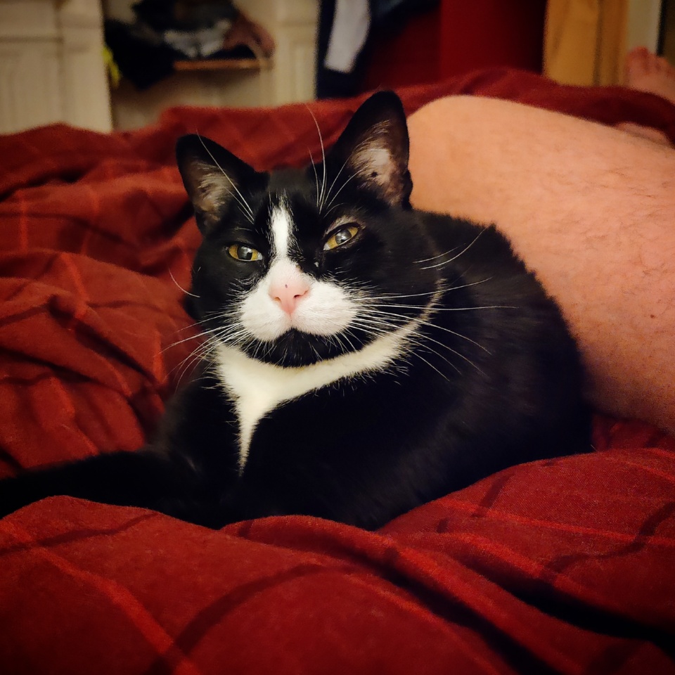 Sa Majesté Sookie Stackmouse de la patte Étendue qui paraissait assez à l’aise contre ma cuisse dans le lit hier soir. Je plussoie