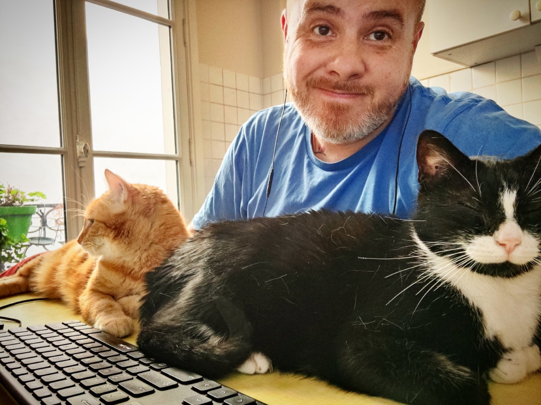 Nan mais ça faisait hyper longtemps que vous n’aviez pas eu de nouvelles des chatounettes !!? Eh bien, tout roule. Le télétravail reste très apprécié, et elles me collent dès qu’elles en ont l’occasion. Le mimétisme marche fort également comme vous pouvez le voir, à bras croisés, pattes croisées, et réciproquement. Je plussoie
