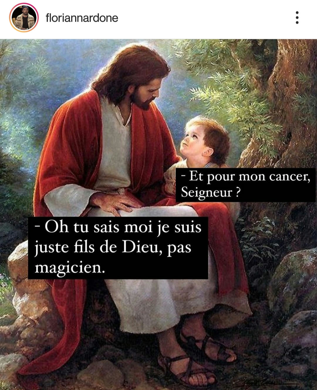 Je ne sais pas si vous connaissez ce compte Instagram, mais c’est un délice de détournements et d’humour noir. Ce Florian Nardone me fait rire sans coup férir pour quasiment tous ses posts. [Source] Je plussoie