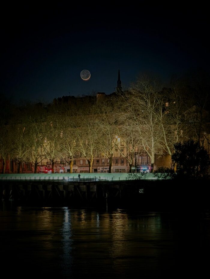 J’adore quand la lune se devine à peine comme cela, juste un mince filet de lumière dans la nuit nantaise. Et étrangement la partie à l’ombre est terriblement visible et...