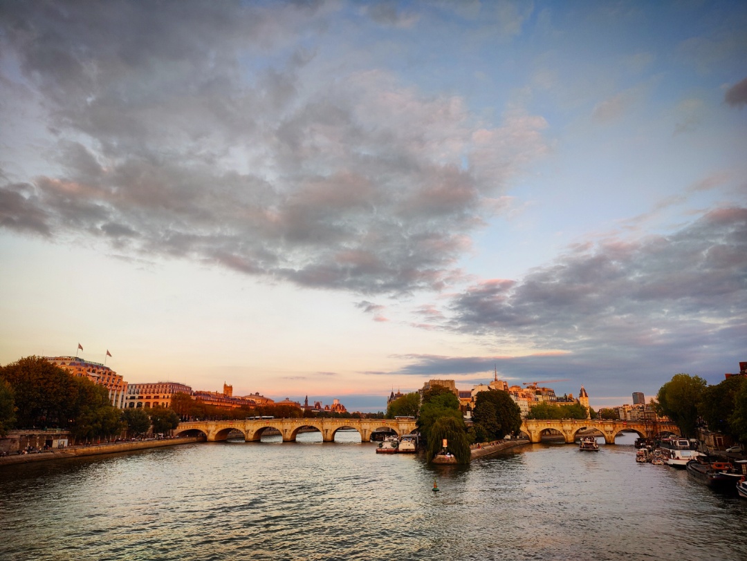 En rentrant de Nantes, je suis rentré à pieds chez moi depuis la gare Montparnasse. J’aime bien ce chemin, et bien sûr le plus chouette c’est la traversée de la Seine qui passe par le pont des Arts puis le Louvre. J’adore la vue qu’on y a sur le Pont-Neuf qui est souvent d’un bel orangé au coucher du soleil. Mais il y a également de l’autre côté le vrai coucher de soleil depuis le Pont des Arts, et c’est rarement moche.